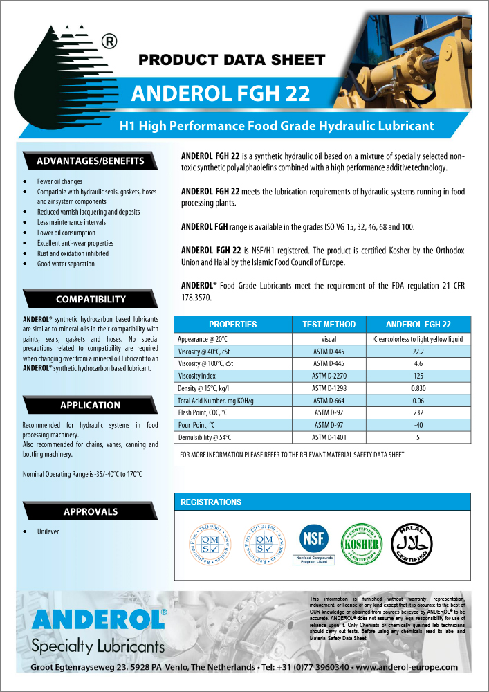Healthy Anderol FGH 22 Oil - Safety Sheet