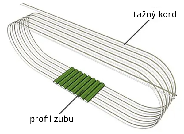 - Tažný prvek se skládá z ocelových kordů vysoké pevnosti a vysokého modulu pružnosti