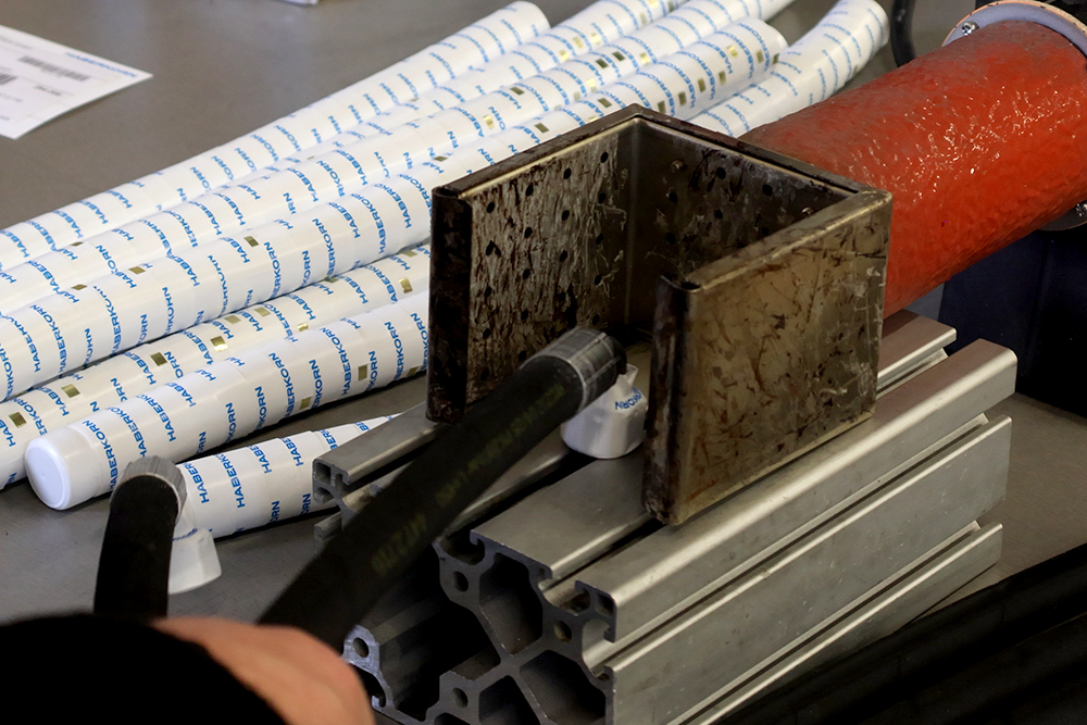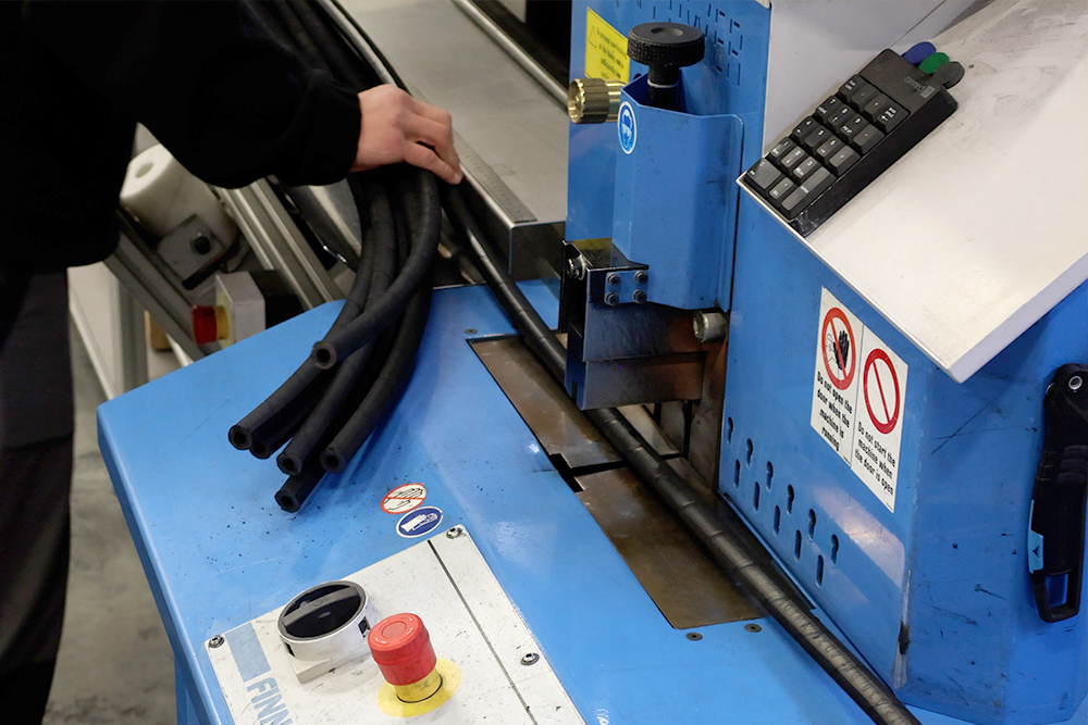 Vďaka poloautomatickej linke minimalizujeme možnosť vzniku ľudskej chyby. Každá zákazka je od začiatku výroby až po jej ukončenie označená čiarovým kódom, ktorý sa nesie celým procesom výroby a vďaka nemu je zákazka vždy jednoznačne identifikovaná. Automatické odmeriavanie hadíc umožňuje rezanie hadíc na presnú dĺžku. Zakladáme si na čistote hadíc – prípadné nečistoty sú z hadice po reze odstránené podtlakovým odsávaním.